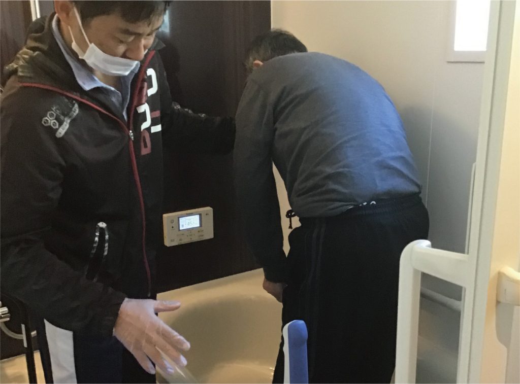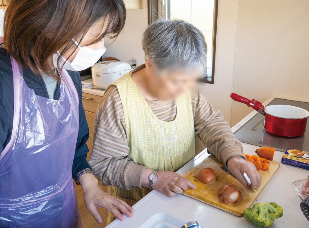 「訪問リハビリテーション」は、理学療法士や作業療法士、言語聴覚士の国家資格を持ったスタッフが自宅に訪問し、あらかじめ設定した目標に向かって、実生活の場でリハビリテーションを行うほか、ご家族様に福祉用具や介助方法などのアドバイスも行っています。