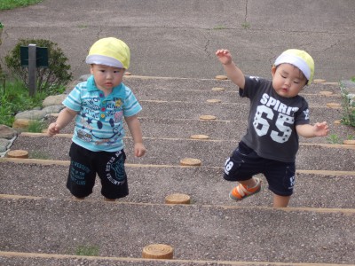 0歳児も 階段登りに挑戦です。