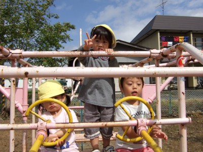 乗り物遊具は最高!! 安全運転で出発です。