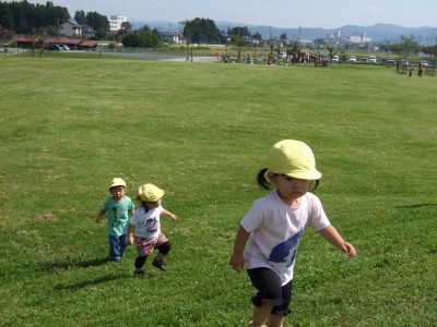 大きい子ども達は、どんどん斜面を駆け登ります。