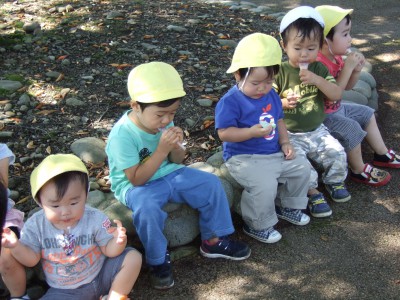 林でどんぐり拾いもしました。