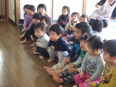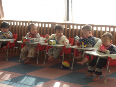 0歳児は座って応援です。