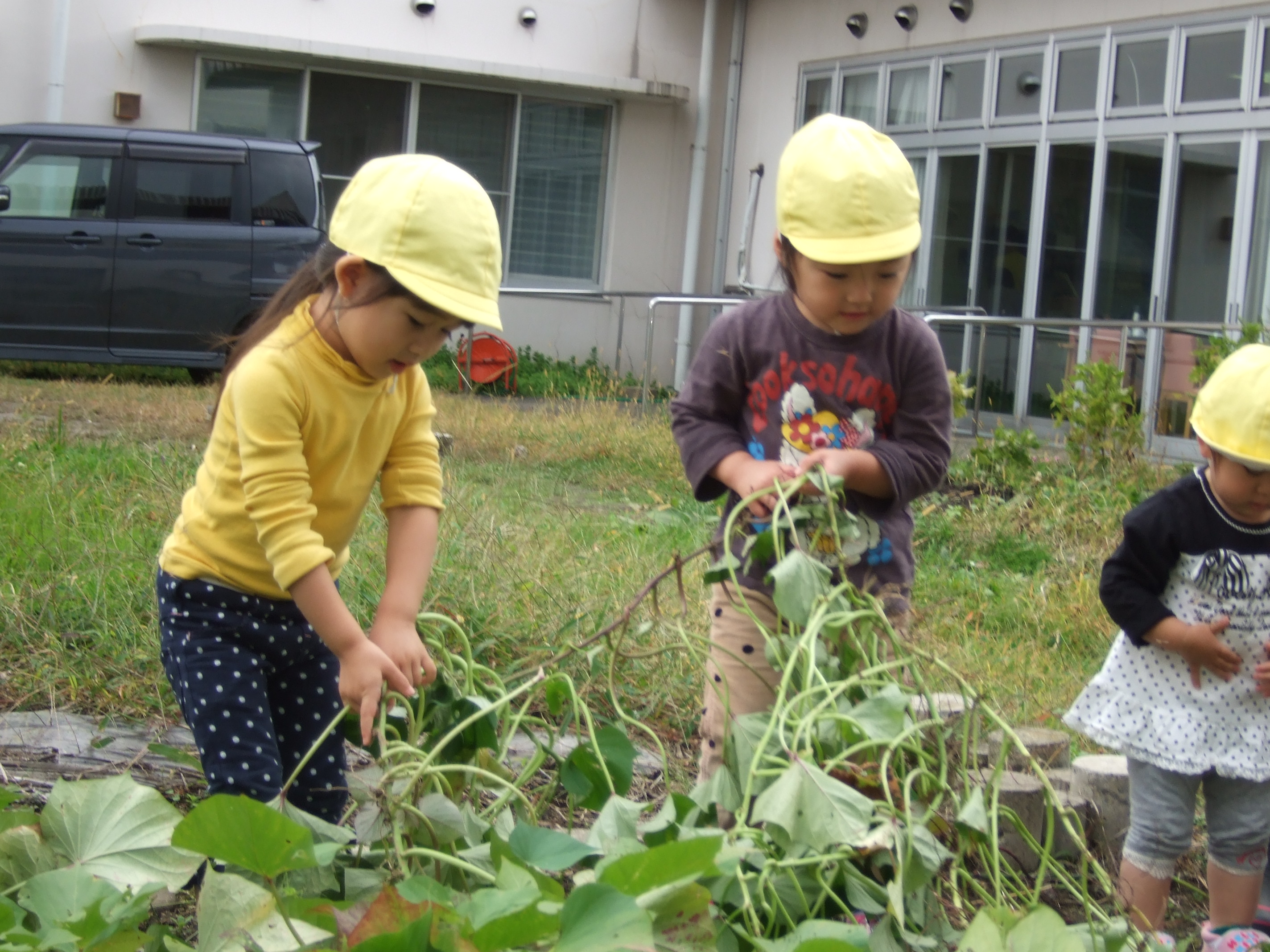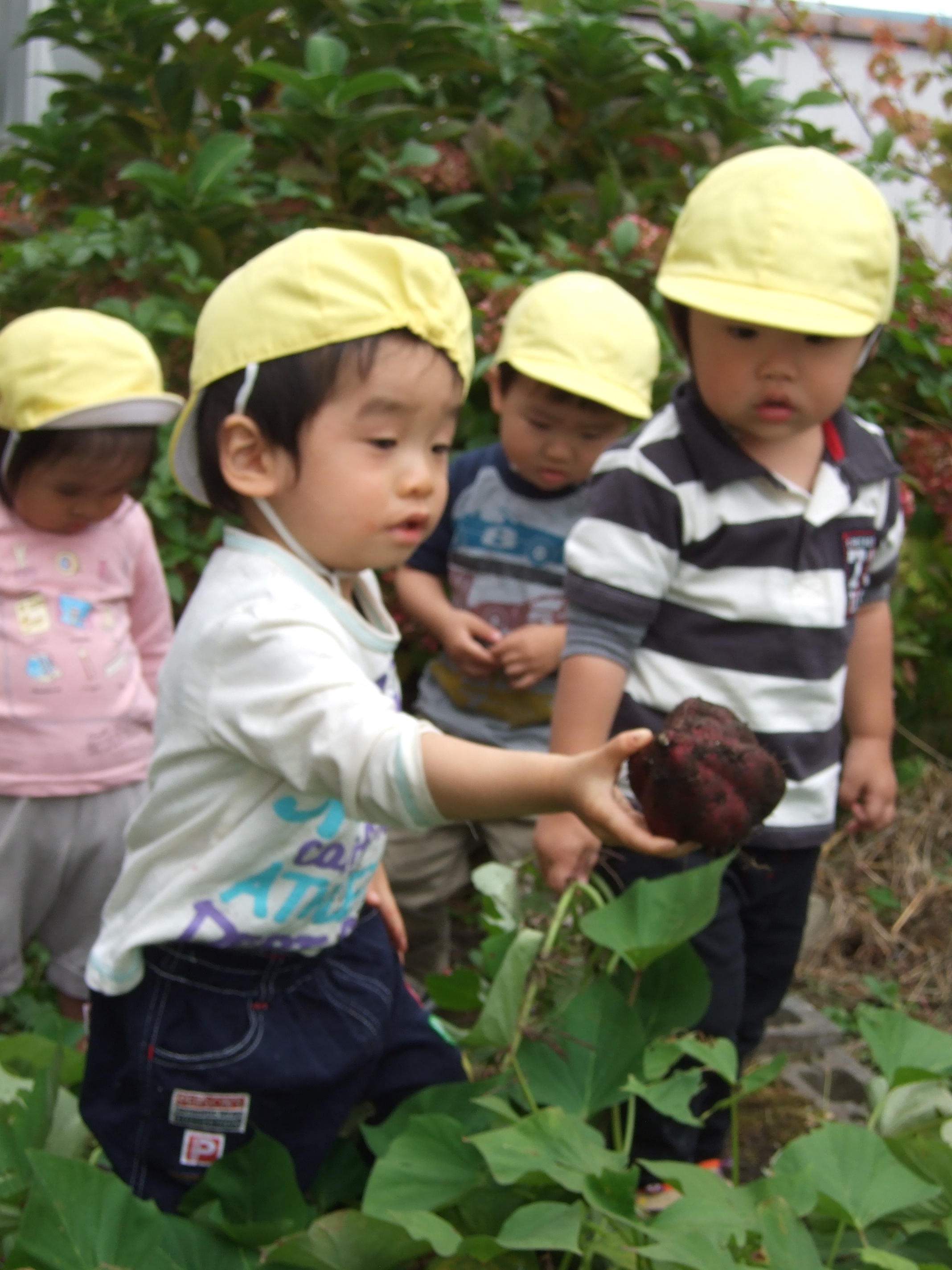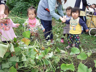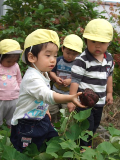 「やったー」大きなお芋がとれました。