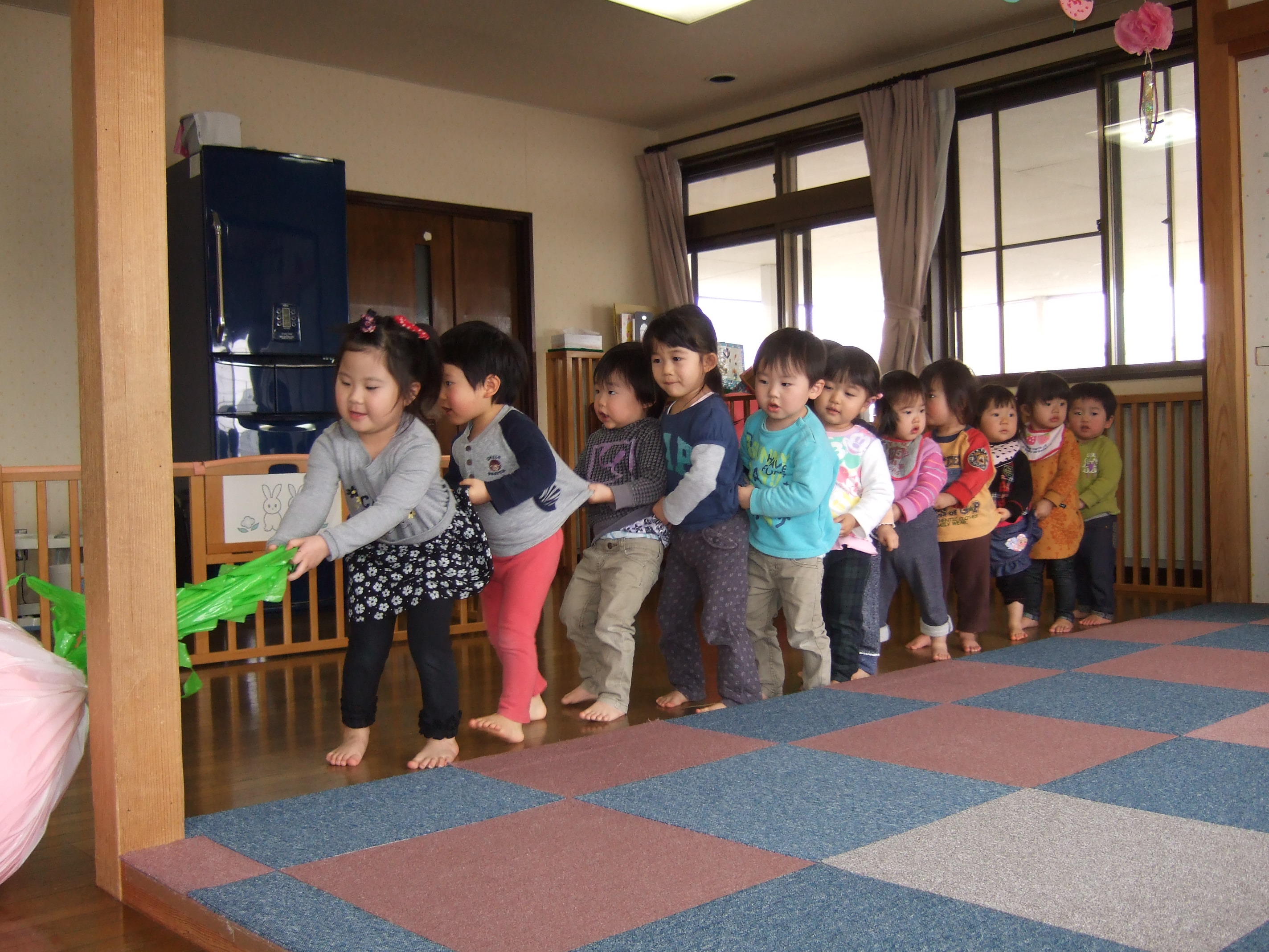 誕生会では「大きなカブ」の劇に全員参加です。