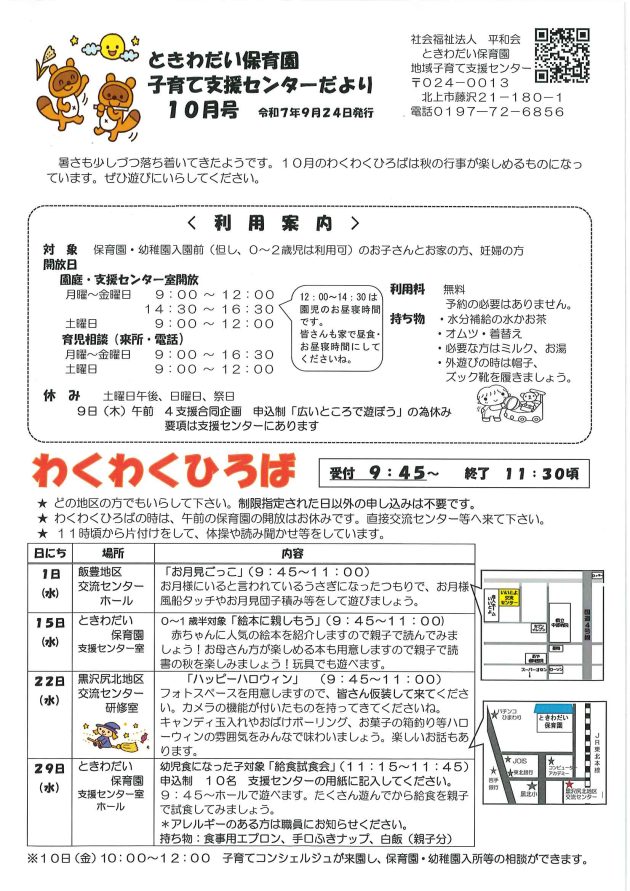 子育て支援センターだより 10月号